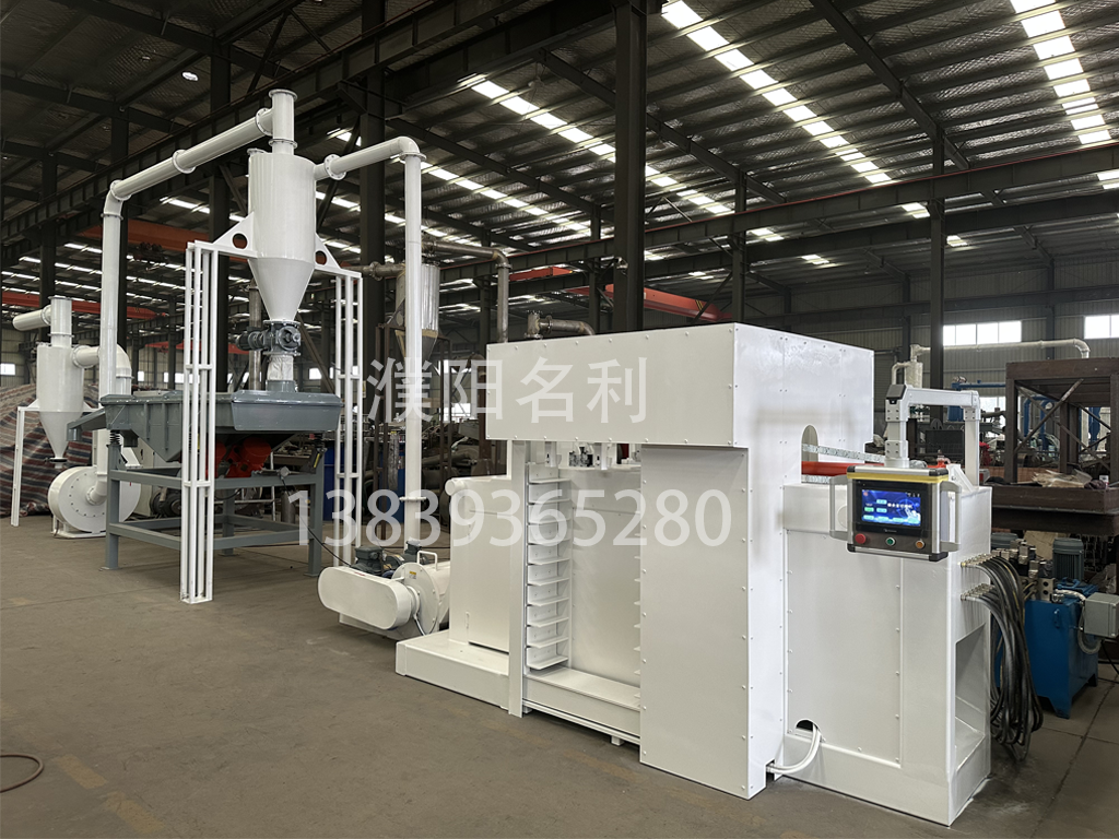 自動鎂合金切屑機由主機、液壓站、配電柜、振動篩、引風(fēng)機組件組成。主機由機架、刀棍、液缸、自動送料裝置、電機組成,配備PLC系統(tǒng)自動控制刀輥旋轉(zhuǎn)、油泵開停、液壓閥換向等各種設(shè)定功能的工作;液壓站為主機壓料、進(jìn)給提供動力;引風(fēng)機負(fù)壓卸料到振動篩篩分成品。